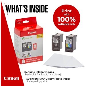 Canon Ink & Paper Multipack – PG-540/CL-541 Genuine Printer Ink Cartridges 2 Pack (1 x Black, 1 x Colour) & 4×6 Photo Paper (50 x Sheets) For PIXMA TS5150, TS5151, MG3650s, MG4250, TS5100