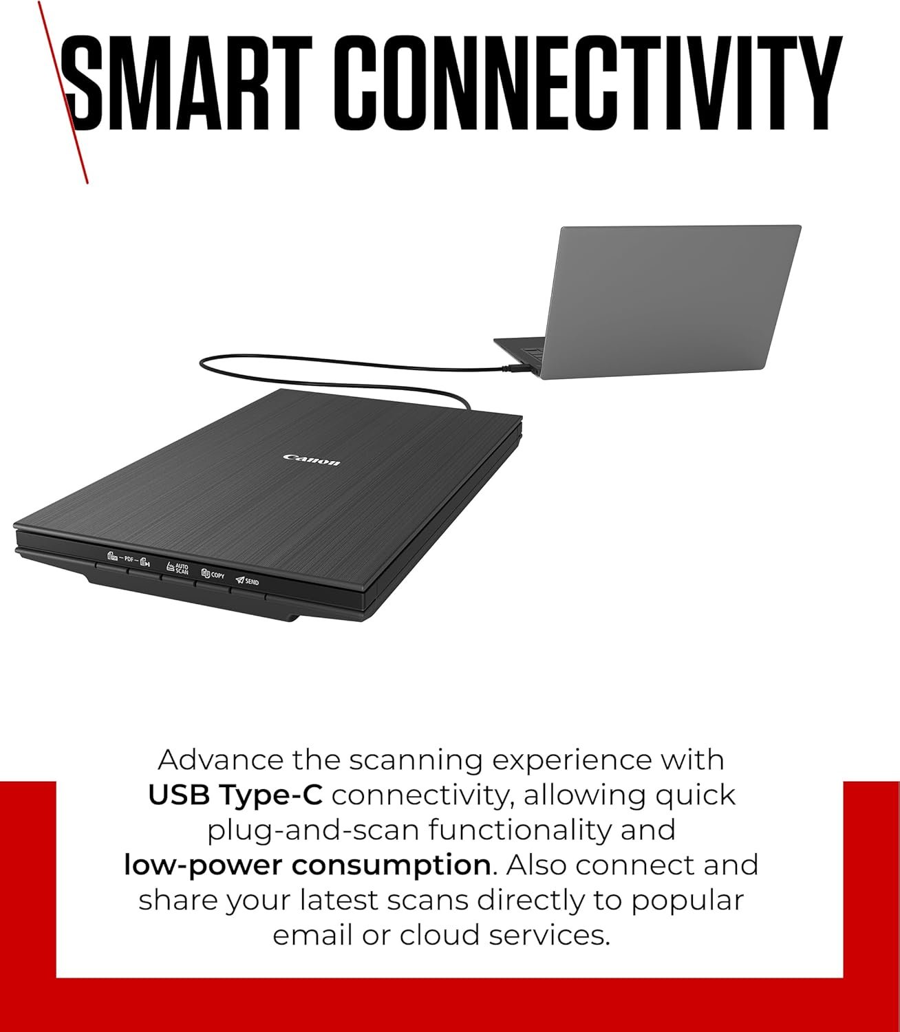 Canon LiDE 400 Colour Flatbed Scanner (Black) – Space Saving Design with USB Type-C Connectivity, Easy One-Touch Operation – Ideal for Home or Office