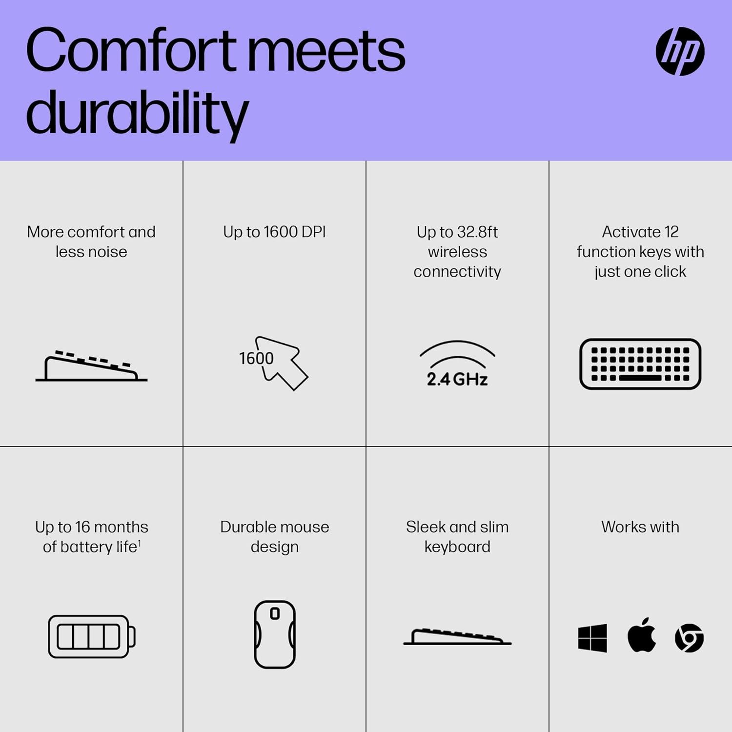 • Built for comfort, made for quiet. Experience a keyboard and mouse combo that’s comfortable, sleek and quiet. Now you can be at your most efficient with the least amount of noise. Plus, with keyboard shortcuts and long-lasting batteries, you can stay productive all day long