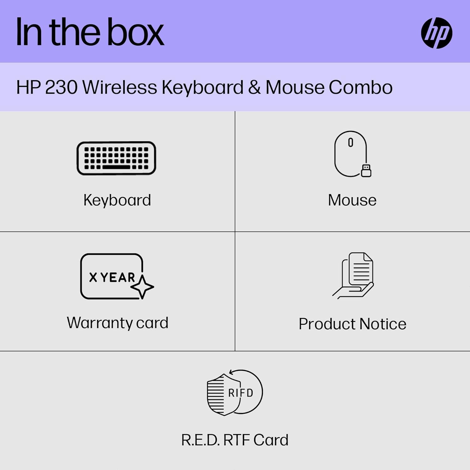 HP 230 Wireless Keyboard and Mouse Combo Set, 2.4 GHz Wireless USB-A Nano Receiver, Up to 1600 dpi, Up to 16 Months Battery Life – Black