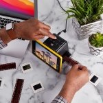 Details:Love reminiscing with film negatives and slides from yesteryear? With the new SLIDE N SCAN Max Digital Film Scanner from KODAK, you can view, edit and convert your old photos, no tech savvy necessary! This easy yet elegant 22MP scanner delivers crisp, clear, beautiful images with the press of a button. Best of all, there’s no straining to see. Watch old memories come to life on the large 7” LCD screen with extra wide viewing angle and gallery mode—perfect for previewing pictures, or for using the scanner as a desktop photo frame! Unlike other frustrating scanners that require you to remove the tray and reposition slides each time, our easy-load insert system allows for continuous feeding, speeding up the scanning process significantly. In addition to the main 50mm slide holder, three adapters are also provided for compatibility with 135, 110 and 126mm films. You can finally skip the stressful software and complicated onboard buttons—and simply scan!