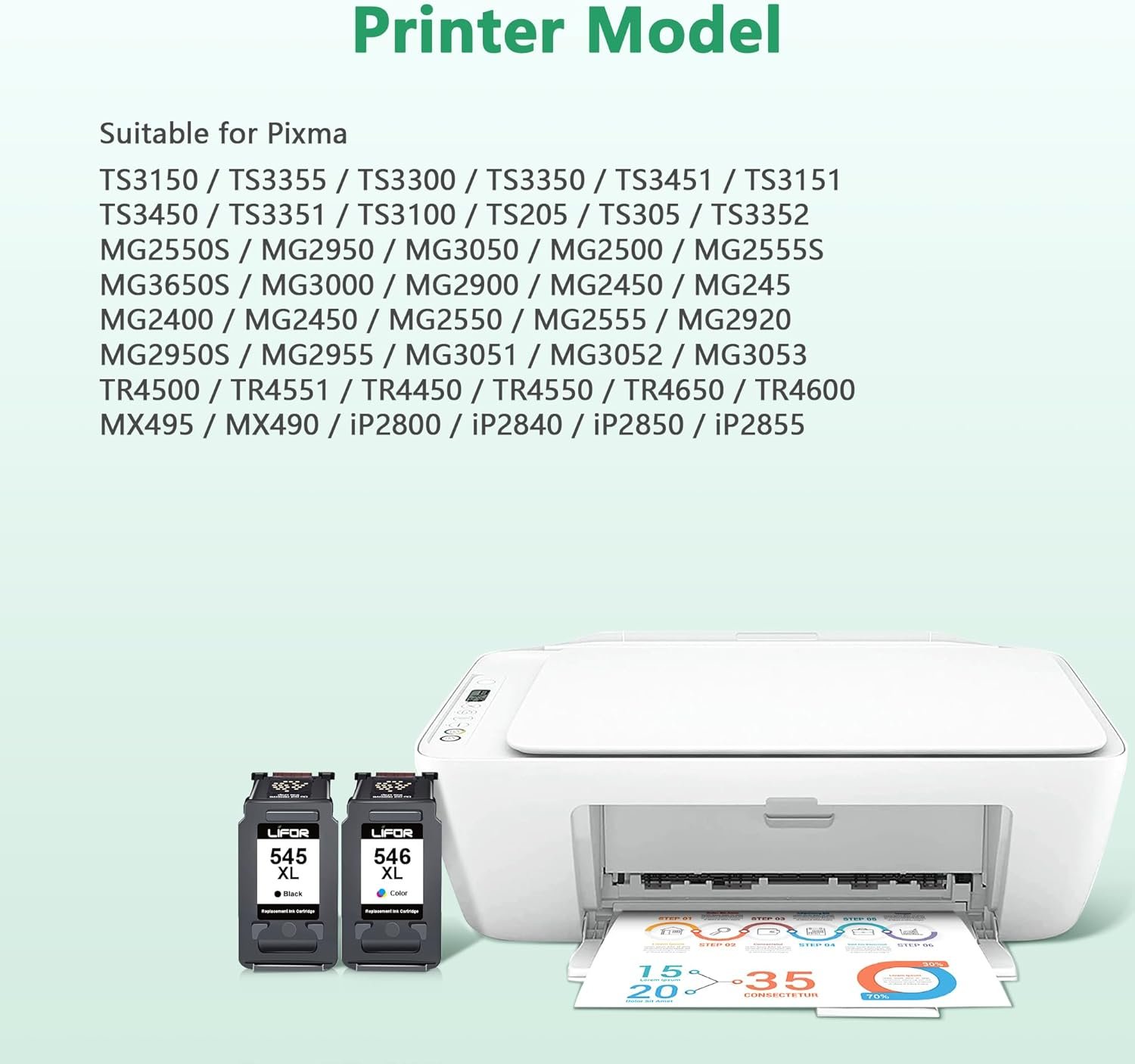 - Replacement for canon printer ink 545 546 ink cartridges , use for Printer With Pixma TS3150 TS3355 MG2550S TR4550 TR4551 TS3451 MG2950 MG3050 MX495 TS3300 TS3350 TS3151 TS3450 TS3351 TS3100 TS205 TS305 TS3352 MG2550S MG2500 MG2555S MG3000 MG2900 MG2450 MG2455 MG2400 MG2450 MG2550 MG2555 MG2920 MG2950S MG2955 MG3051 MG3052 MG3053 TR4450 TR4550 TR4650 TR4600 MX490 iP2800 iP2840 iP2850 iP2855