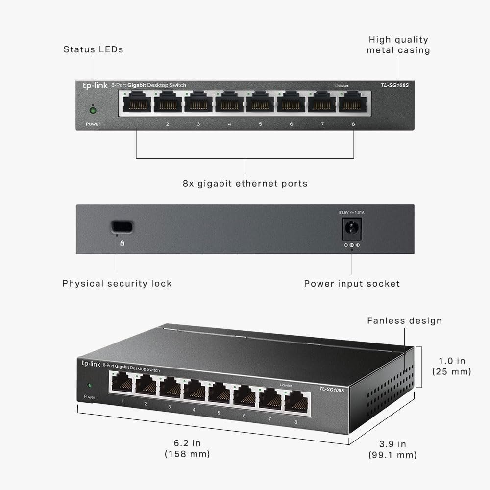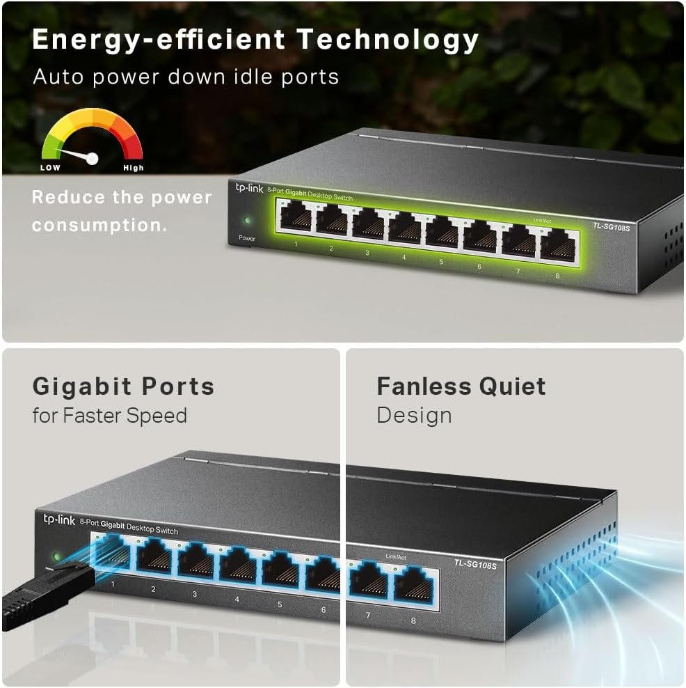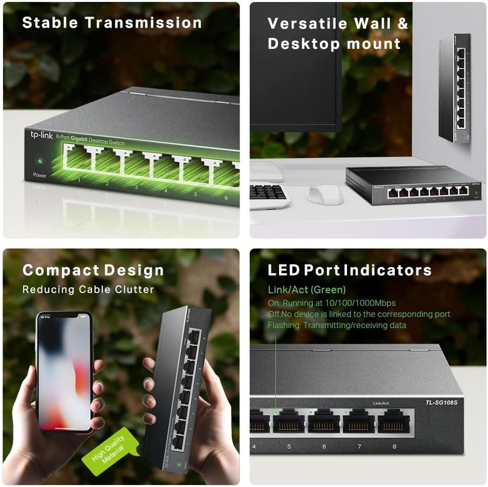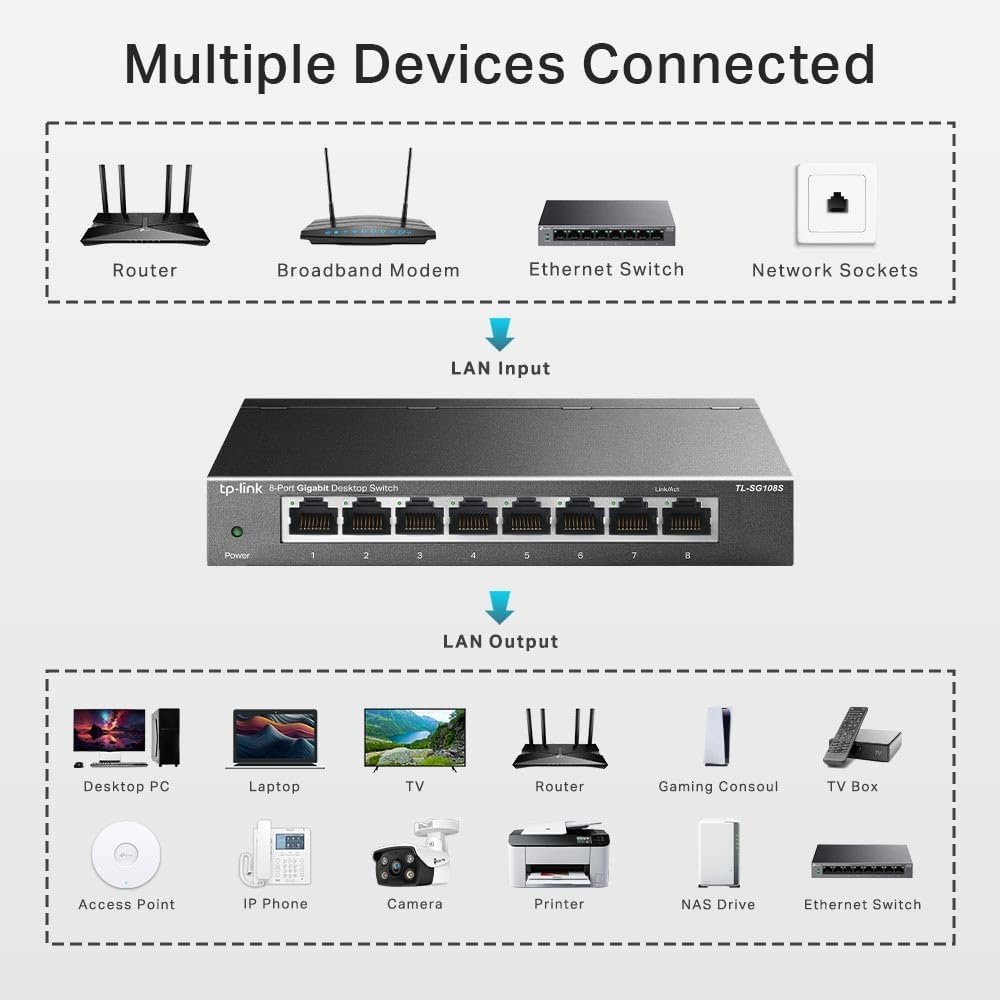 - 8 Port Gigabit Switch – Enjoy the benefits of a fast and stable wired network with Gigabit RJ45 Ethernet Ports, ensuring smooth and uninterrupted connectivity with multiple devices
