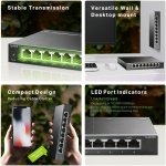 - Unmanaged Plug-and-Play Switch – Easy to use with no configuration required, making it simple to set up and expand your network instantly