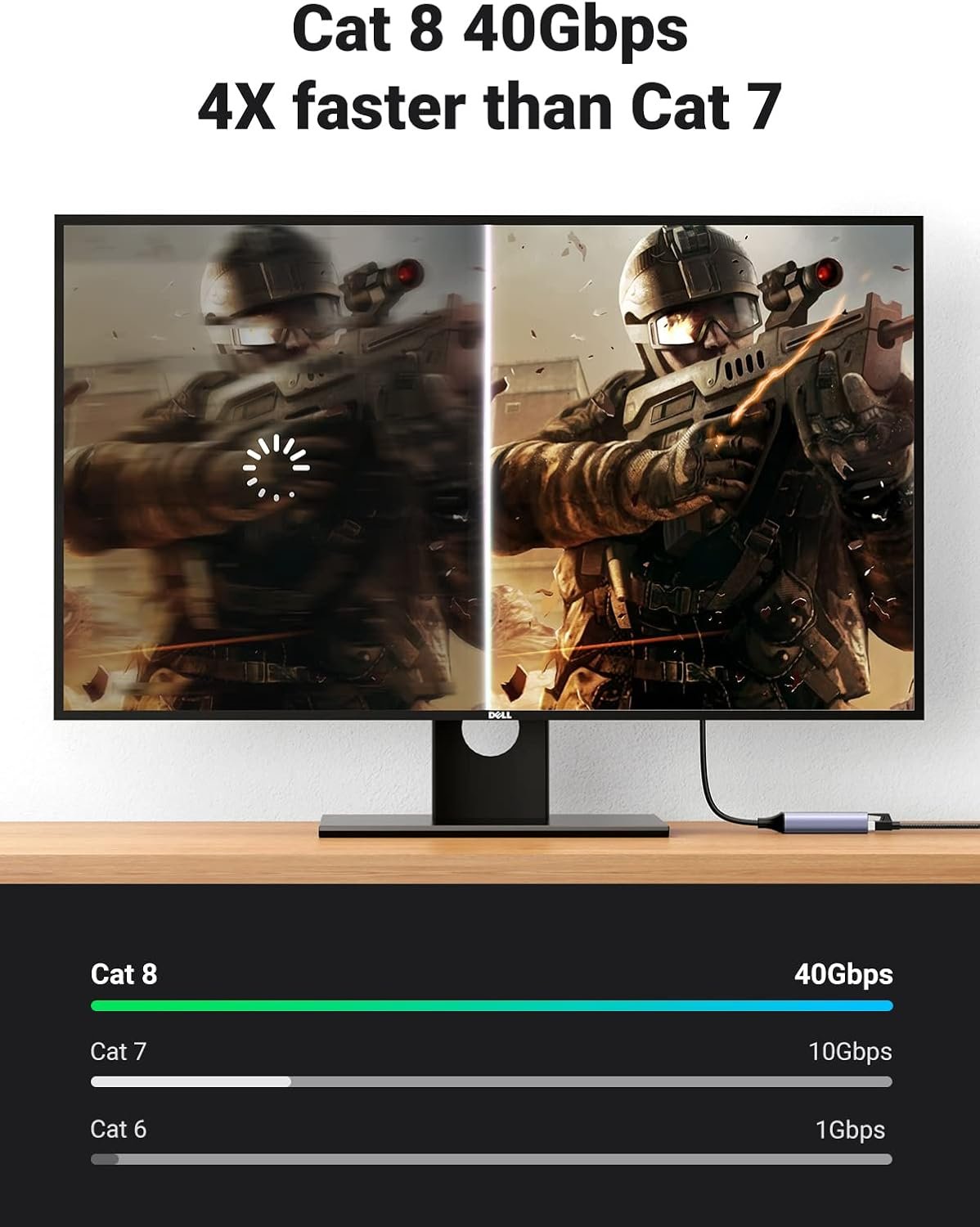 • 40Gbps 2000Mhz High Speed: Cat 8 ethernet cable supports bandwidth up to 2000MHz and 40Gbps data transmission speed, ensuring faster network speed than others for you to play online gaming, surf the Internet, online HD video streaming, upload, download, transmits data,and more.