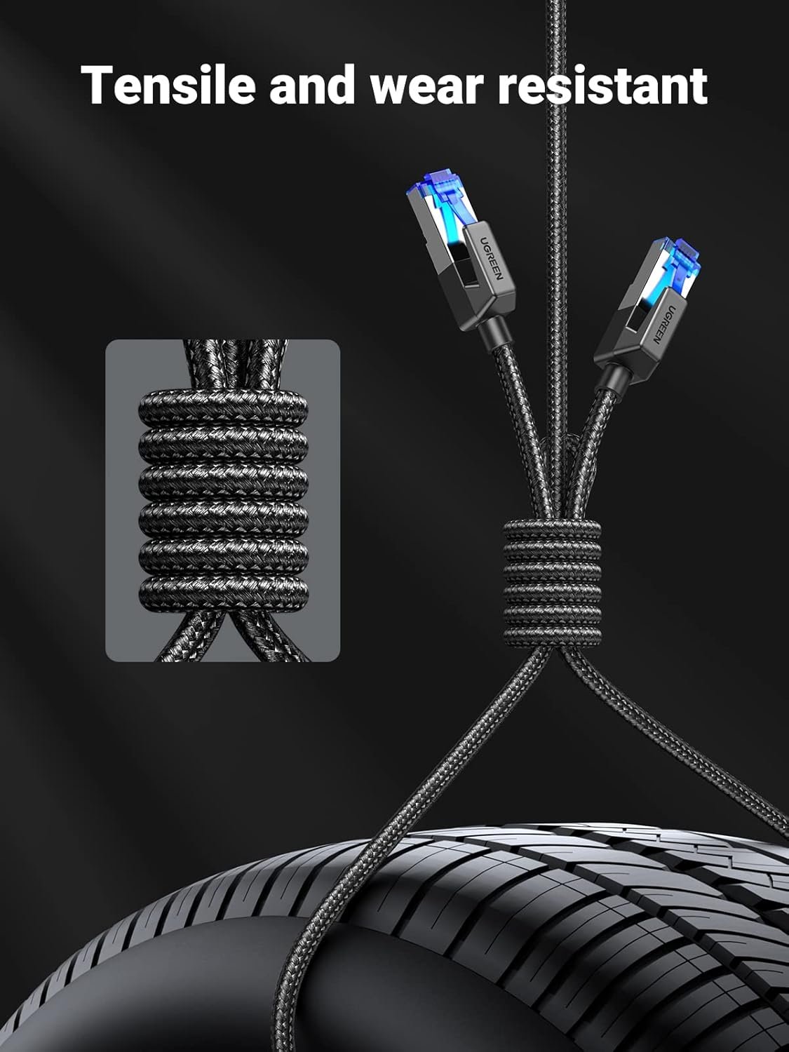 • Durable Braided Design: UGREEN Cat 8 ethernet cable wrapped with quality cotton braided cord, which makes the LAN cable stronger and more durable. The test proves that this internet cable can be bent at least 10000 times without breaking, which is very suitable for long-term use.