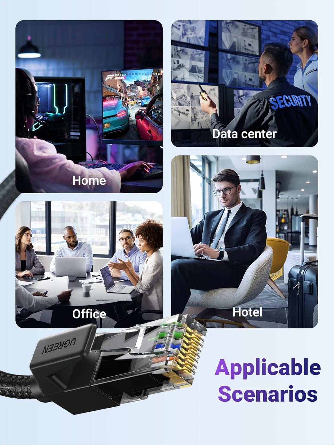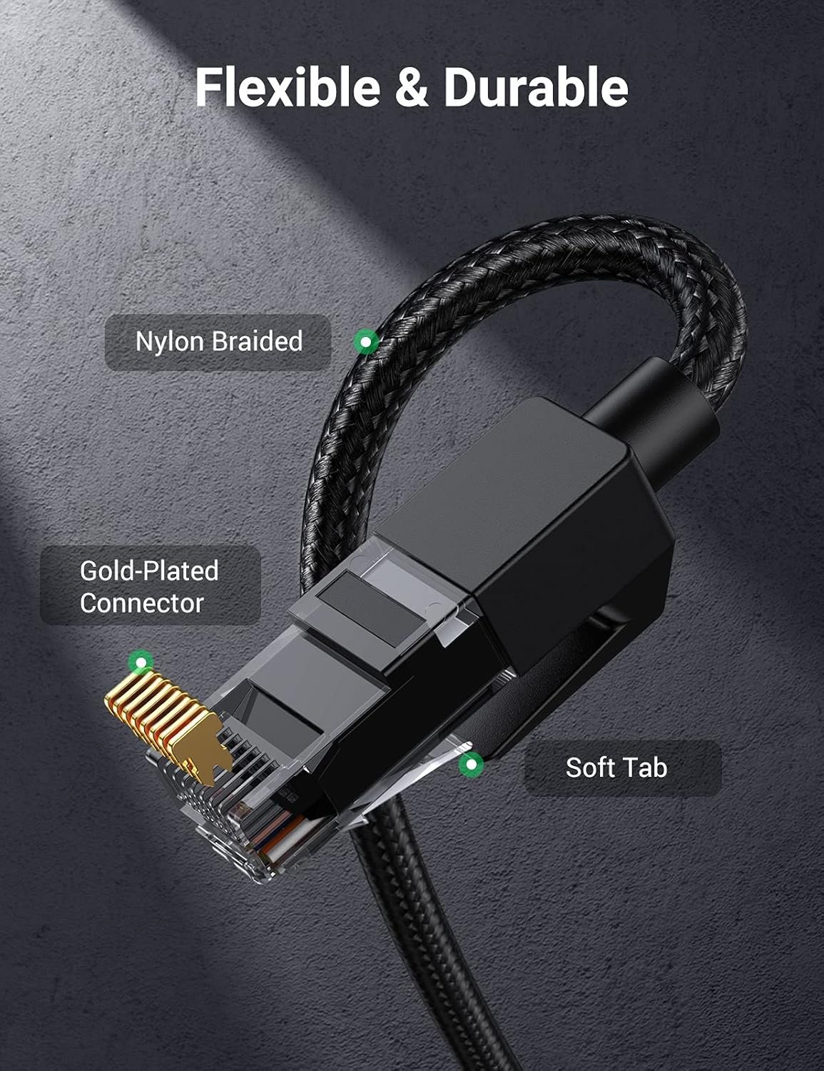 • Braided Ethernet Cable: UGREEN cat6 braided internet cable is more endurable for lasting longer than others. It’s made of high-density braided material which endures over 10,000 bending tests: flexible, stronger, and wear-resistant. Besides, there are anti-oxidant connectors with anti-dust caps that will help to keep the connectors tidy and durable.