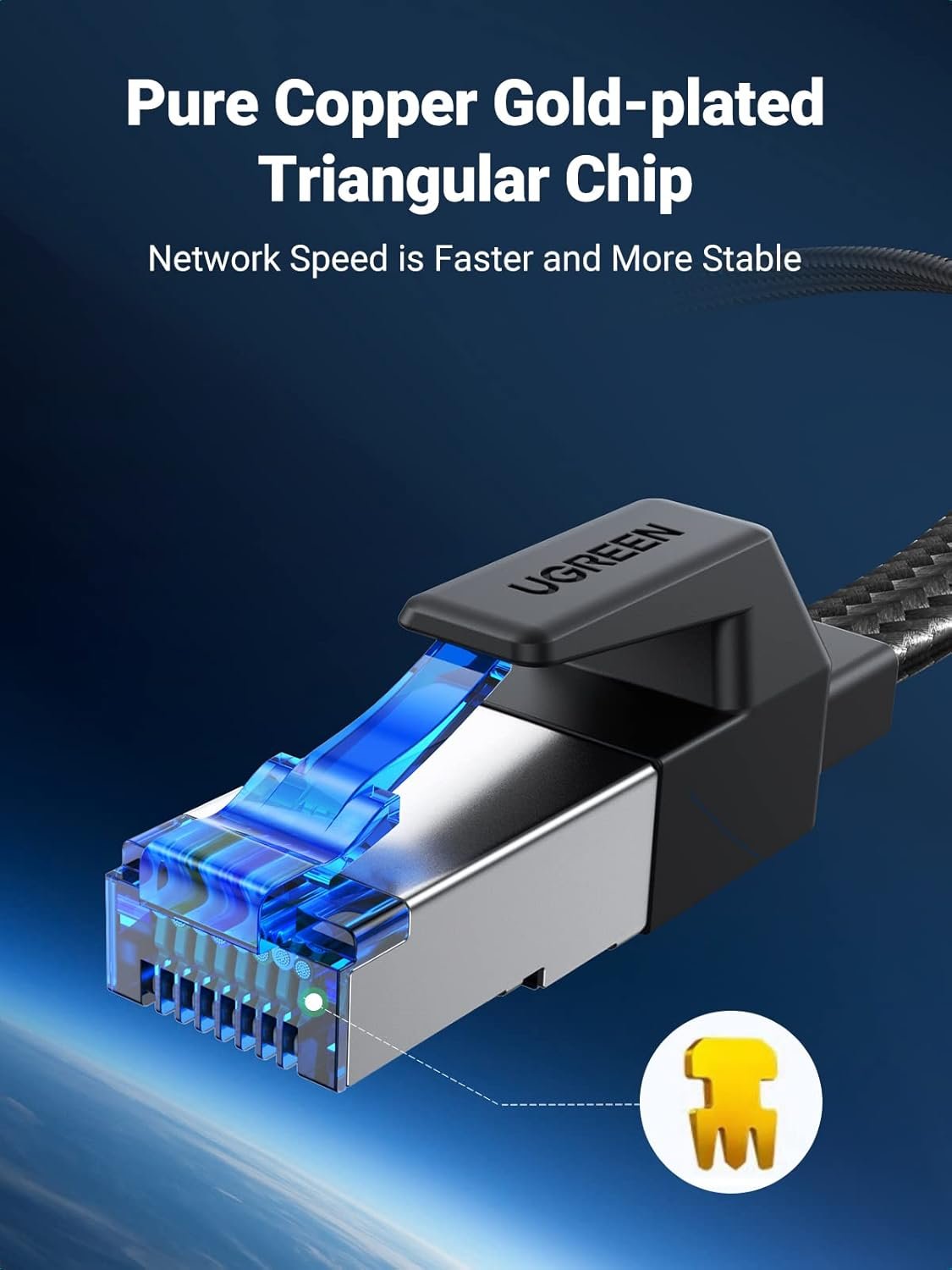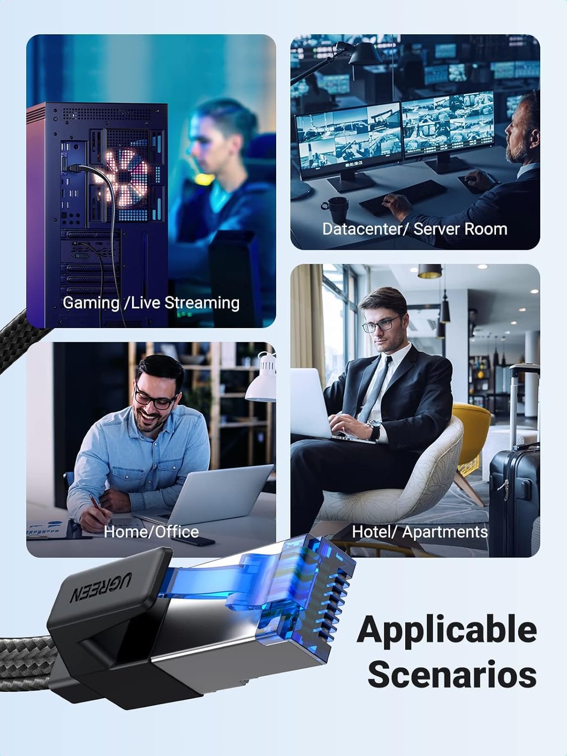 - More High Speed: UGREEN ethernet cable supports bandwidth up to 2000MHz and 40Gbps data transmission speed, ensuring stable network speed for you to do online gaming, live streaming, transmits data,surfing the Internet, online HD video streaming, upload, download, and more.