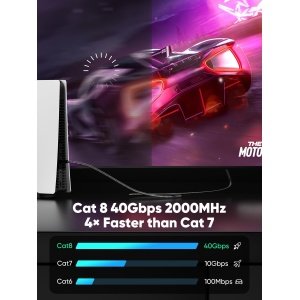 UGREEN Ethernet Cable 1M, Cat 8 Internet Cable High-Speed 40Gbps 2000MHz RJ45 LAN Cable, F/FTP POE Braided Gigabit Network Cable Compatible with Xbox/Switch/PS5/WiFi Extender/Router/Modem Patch Panel
