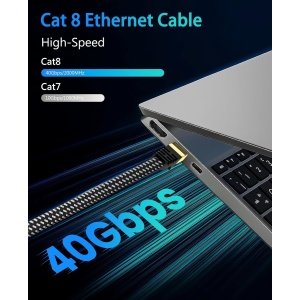 ARISKEEN Cat 8 Ethernet Cable 10M, High-Speed 40Gbps 2000MHz Network Cable Braided Flat Gigabit Rj45 STP Shielded Internet Network Lan Cable Cord for Modem Router PC