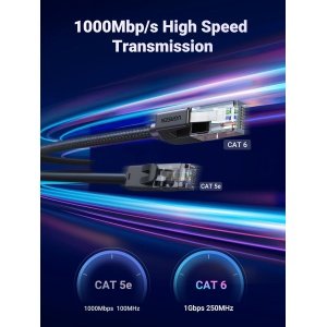 UGREEN Ethernet Cable 1M, High-Speed Gigabit Cat 6 Network Cable, POE 1000Mbps 250Mhz/s Braided Internet Cable RJ45 LAN Patch Cord Compatible with Router, Modem, Smart TV, PC & Laptop, PS5/PS4 Switch